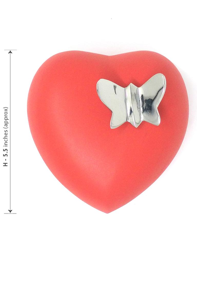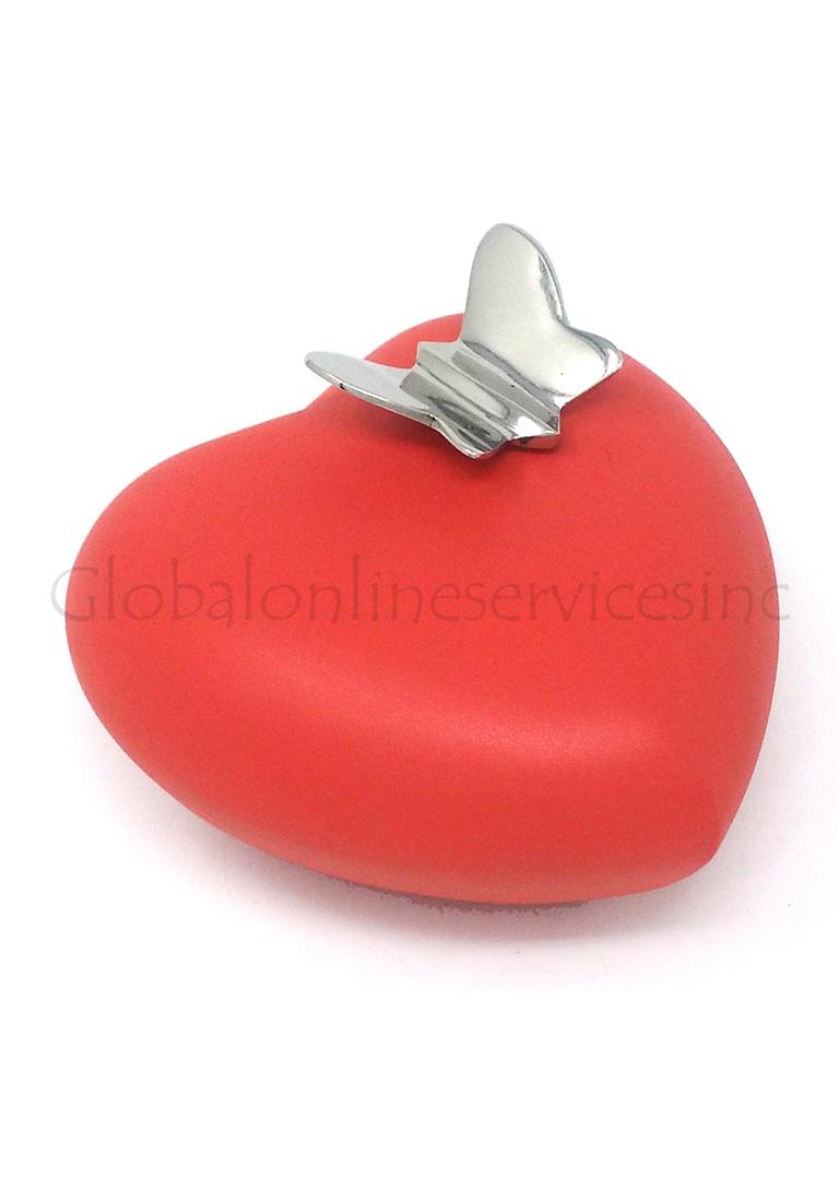 The Butterfly Medium Heart Keepsake Cremation Urn for Human Ashes features a delicate, hand crafted doves design by high quality of brass. Its superb finish is achieved with orange and white butterfly on top of the urn, which details the butterfly background.