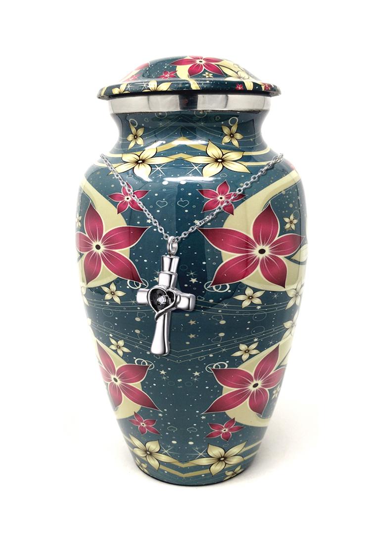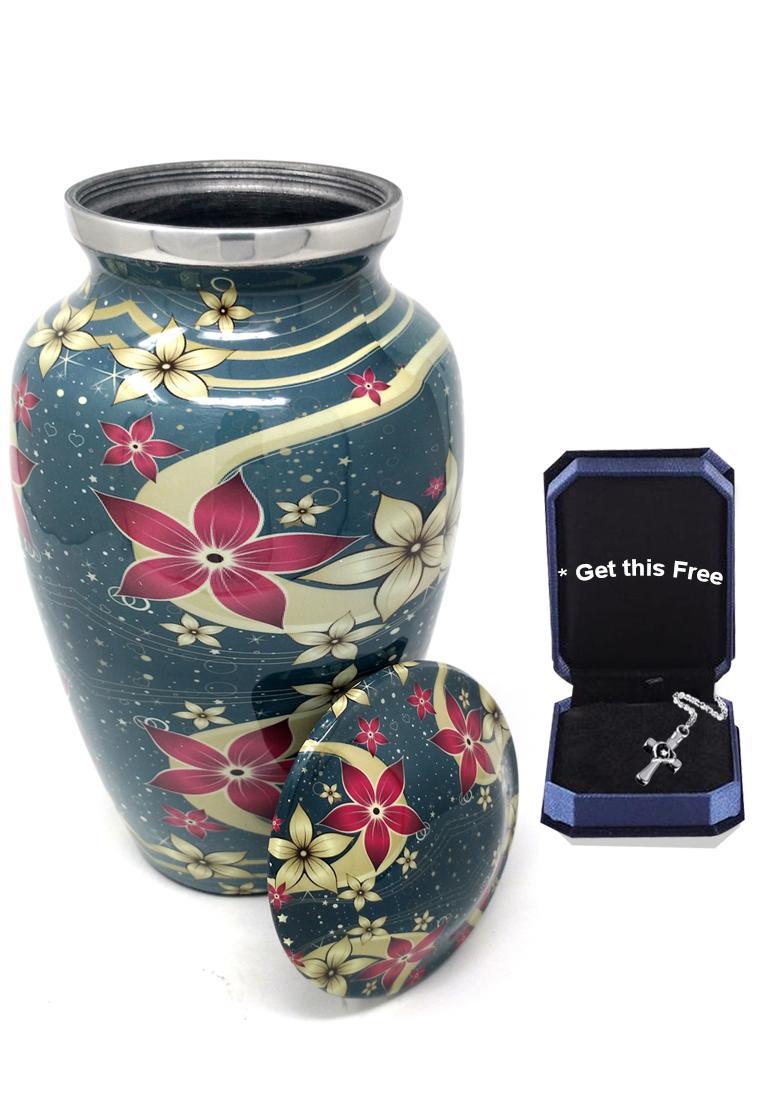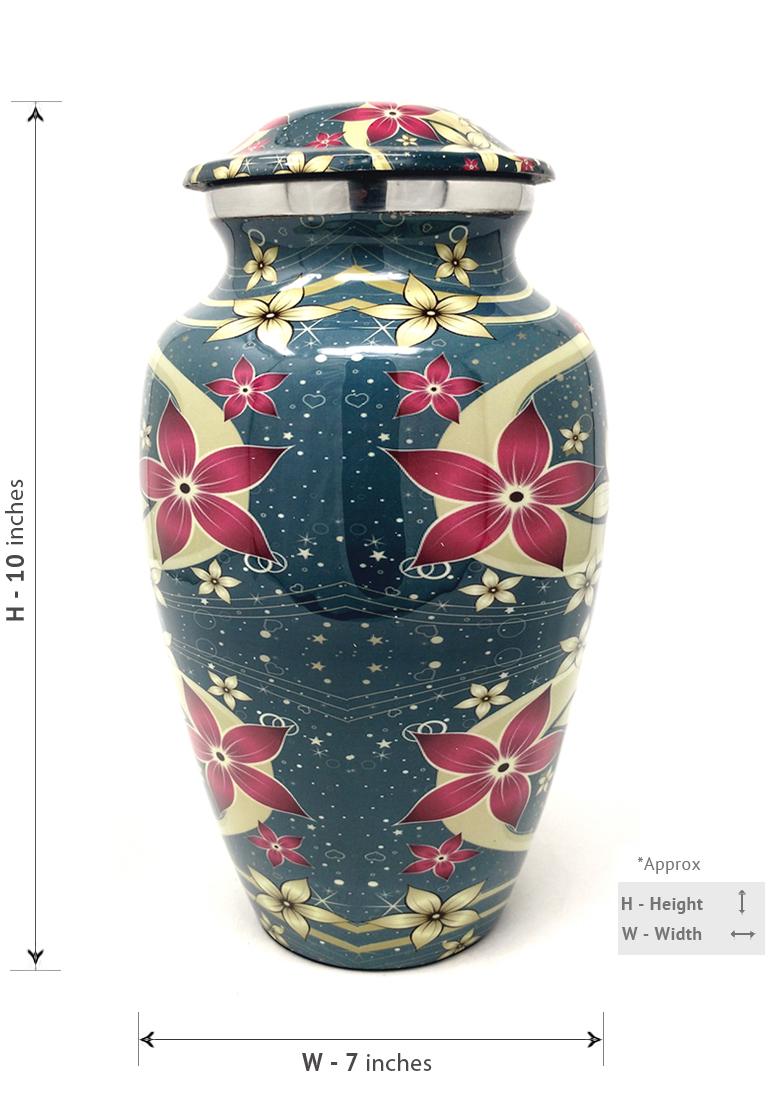Large Aluminium for Adult Cremation Ashes has a superior look of Floral finish intricately hand designed from skilled professionals.