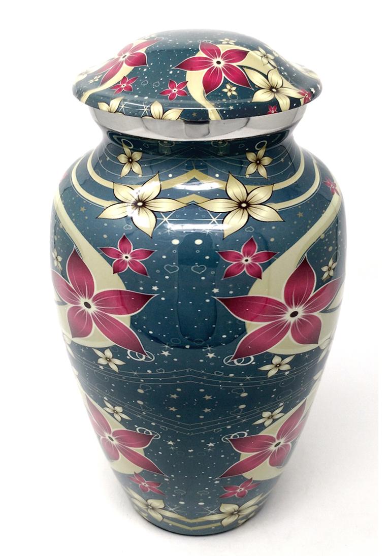- Blue Floral Aluminium Large Cremation Urn for Human Ashes