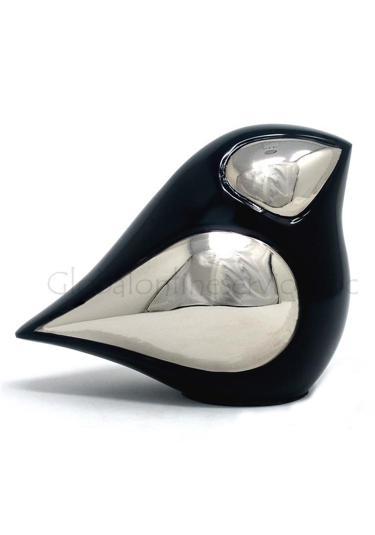 The Brass Bird Medium Cremation Urn is a uniquely crafted memorial urn, designed in the elegant shape of a bird to symbolize peace, freedom, and everlasting love. This artisan-designed urn serves as a timeless tribute to a loved one, whether used as a human ashes urn, pet cremation urn, or a medium for sharing ashes among family members. The glossy black finish with polished silver accents enhances its sophisticated and artistic appeal, making it not only a functional resting place but also a beautiful display piece for home memorials or ceremonial use. Its compact 60 cubic inches capacity makes it ideal for storing a meaningful portion of ashes, allowing families to honor their loved one in a dignified way. The urn’s sleek silhouette and reflective silver trim create a modern yet sentimental aesthetic, offering both emotional comfort and an exquisite memorial tribute.