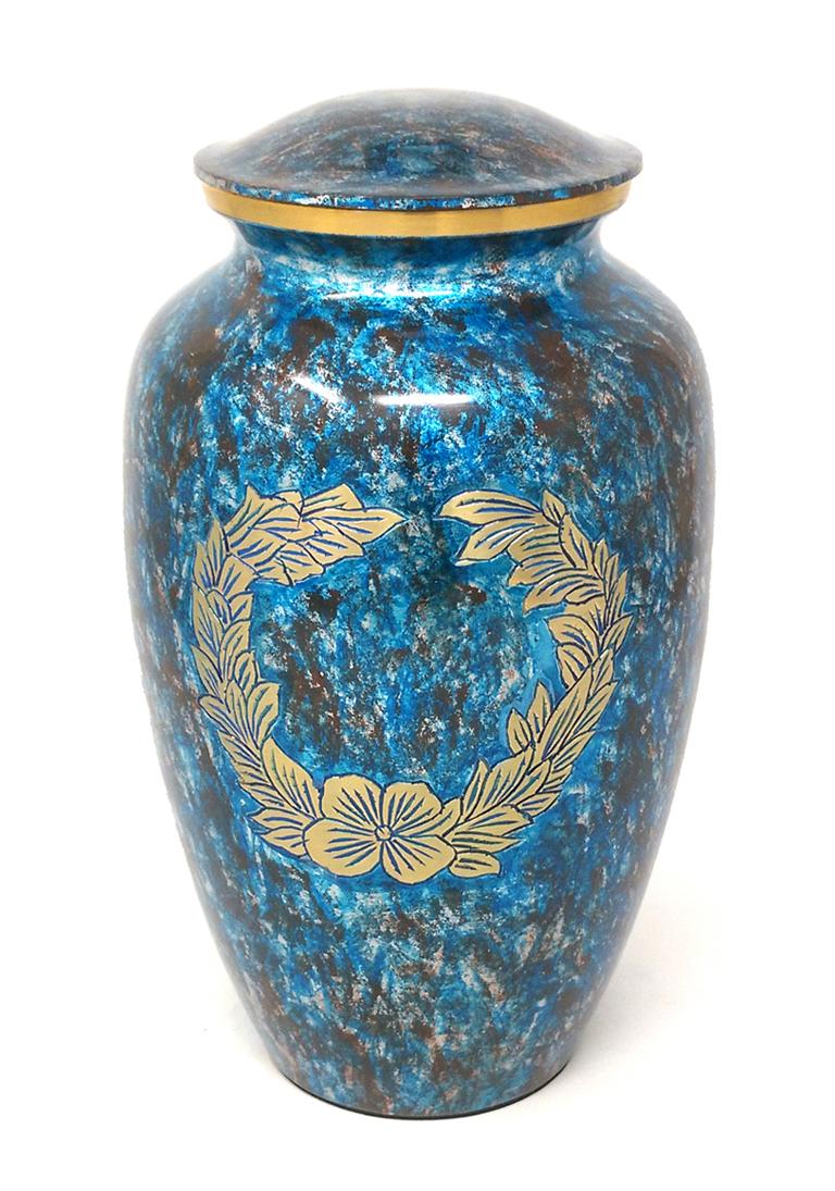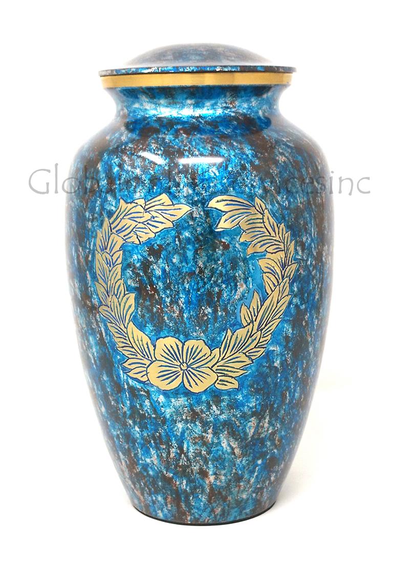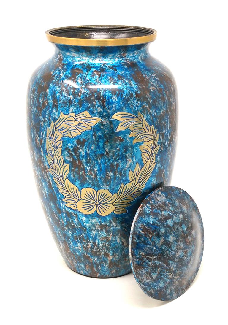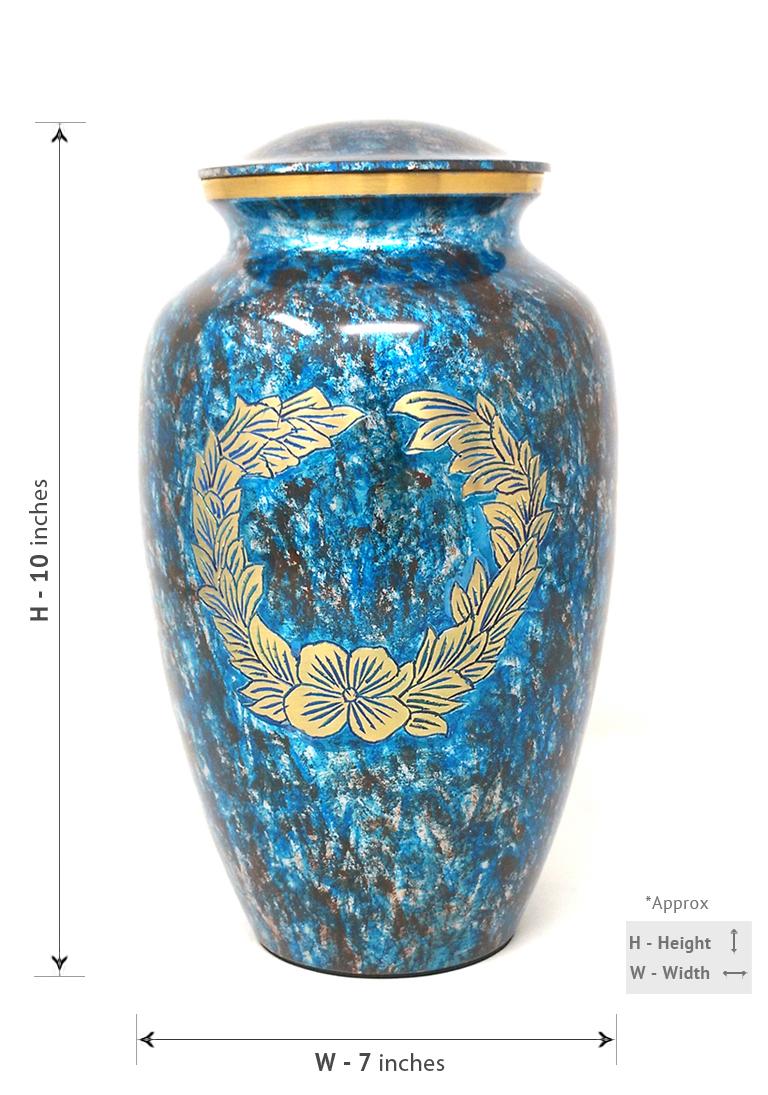 Beautiful urn hand crafted from high quality Brass metal with work from skilled professionals and engravings of red iris enamel.The Screw Threaded Lid closure on top of urn gives an easy access and can be permanently sealed with few drops of super glue.