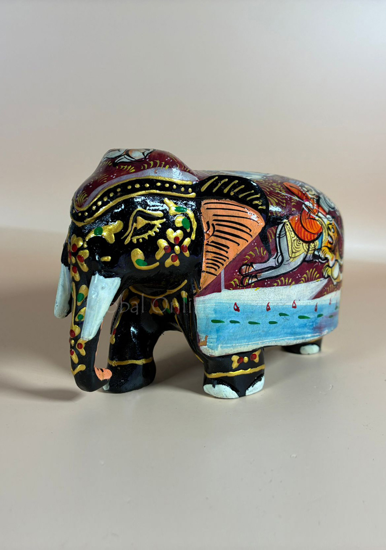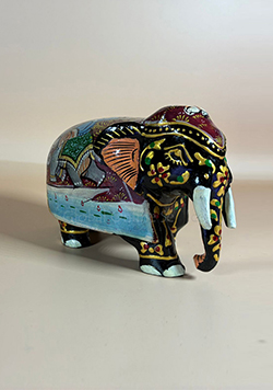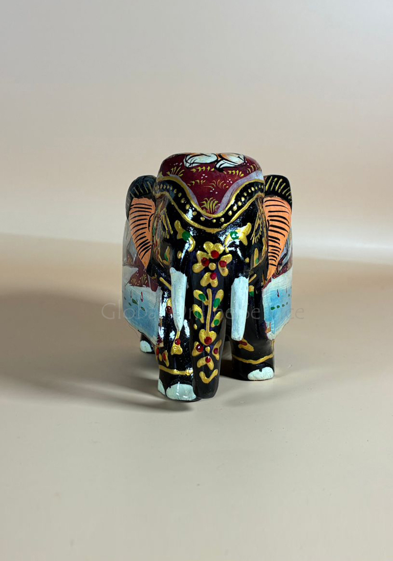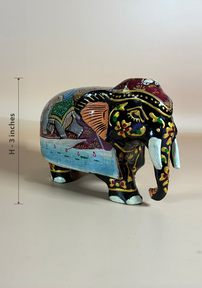 Handcrafted 3" Wooden Elephant showpiece is hand-painted using attractive colors. The combination of wood and vibrant colors blends beautifully. Made from high-quality wood, this 3" elephant will add an elegant look to your home décor. The design on it exudes richness and a royal essence. This 3" mosaic figurine black elephant statue looks rich and exquisite when added to your home décor. Elephants are a symbol of strength and loyalty when added to your home decor. When placed in your living room, this 3" mosaic elephant will add vibrant colors and a happy atmosphere. The Height of the Product is 3 Inches.