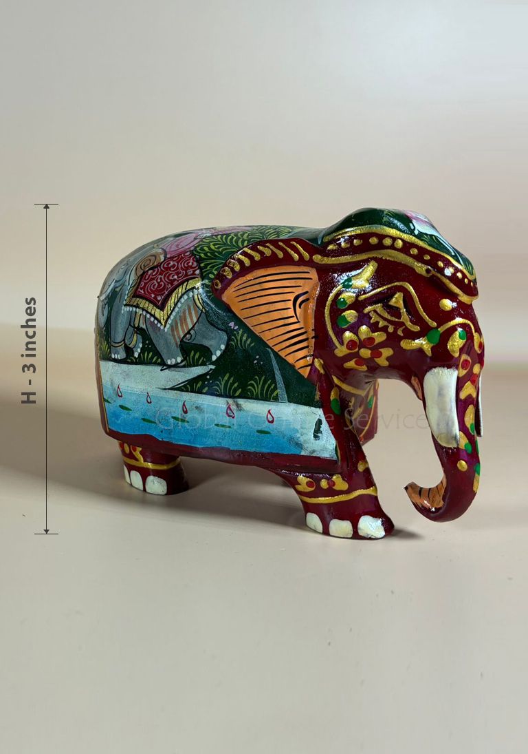 Hand Painted 3-inches Mosaic Figurine Red Elephant