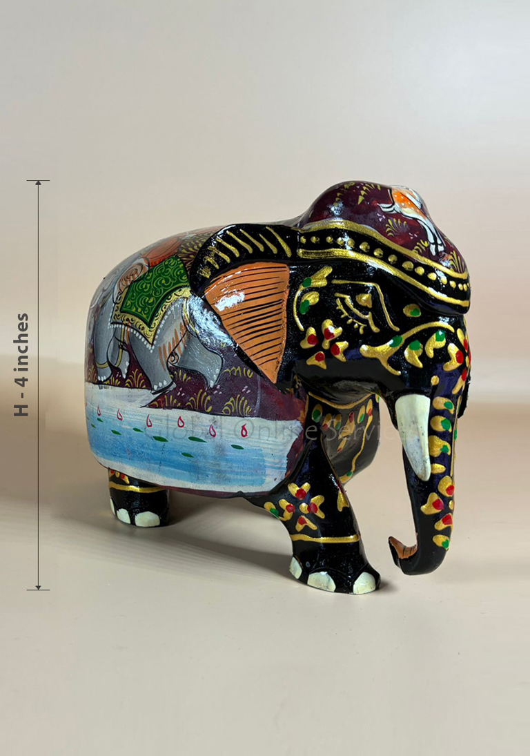 Hand Painted 4-inches Mosaic Figurine Black Elephant
