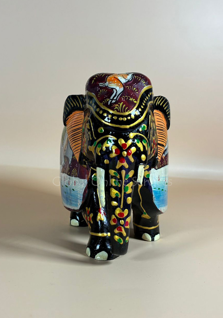 • Hand Painted 4" Mosaic Figurine Black Elephant