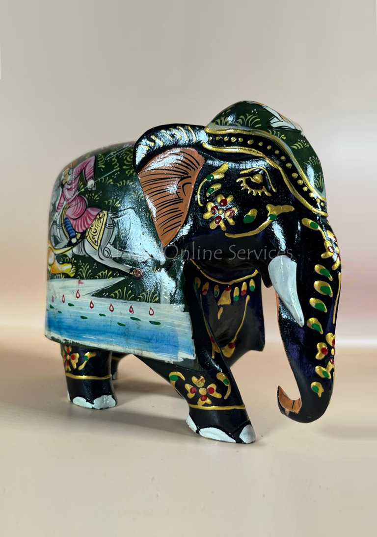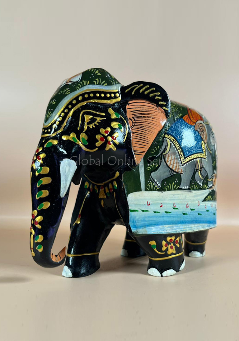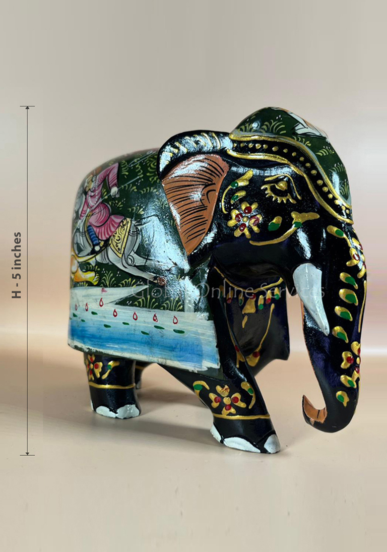 Hand Painted 5-inches Mosaic Figurine Black Elephant