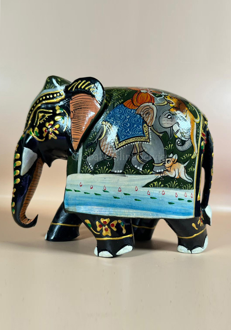• Hand Painted 5" Mosaic Figurine Black Elephant