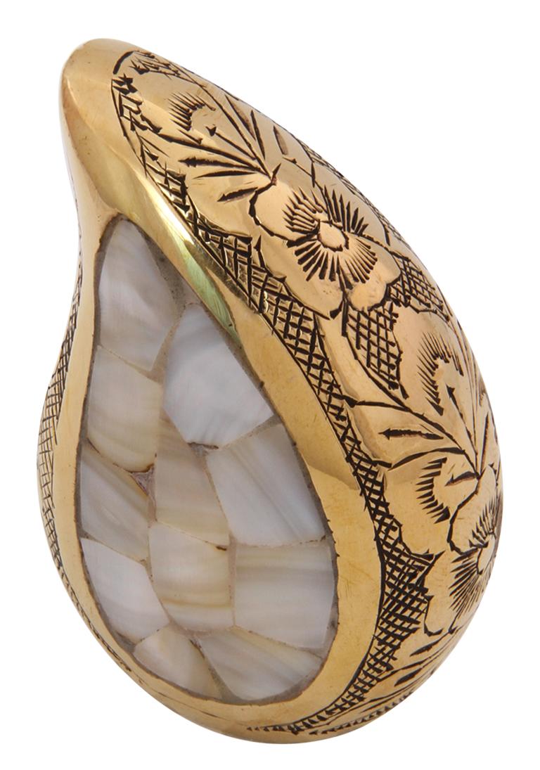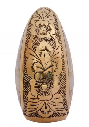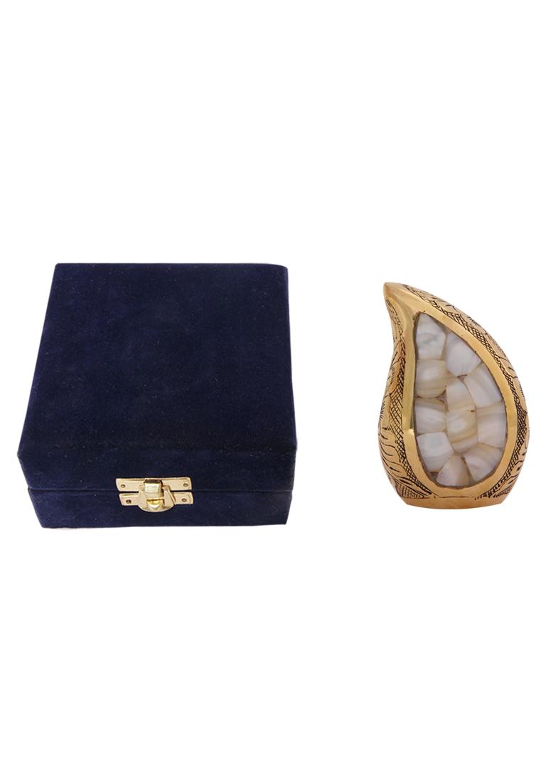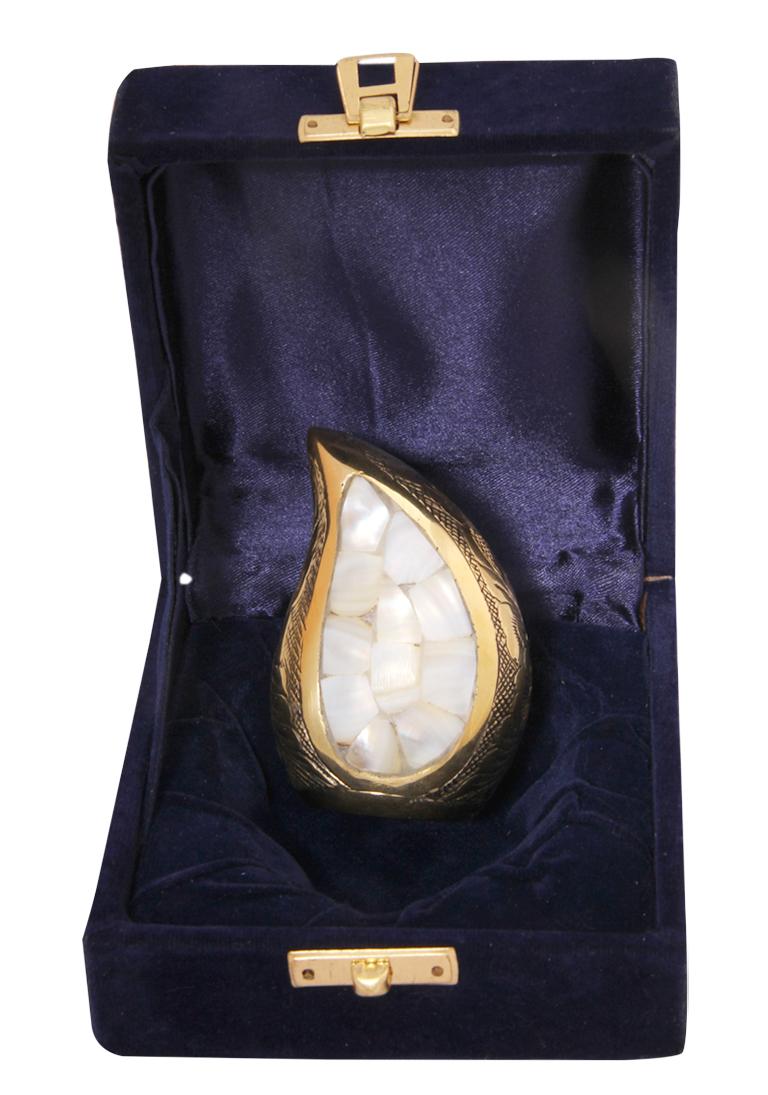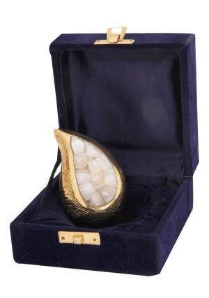 Teardrop keepsake cremation urn is designed to store ashes of the loved one’s and made of brass metal with the engravings of flowers on the brass enamel. Mini keepsake memorial urn has pearl finish centred in the shape of the urn and bordered with black polished finish.