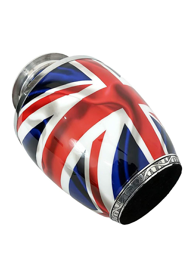 * The 10 Inch decorative cremation urn has a UK flag design and has a smooth finish on it.