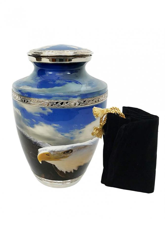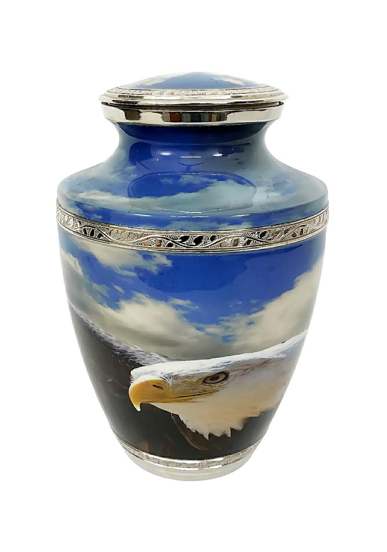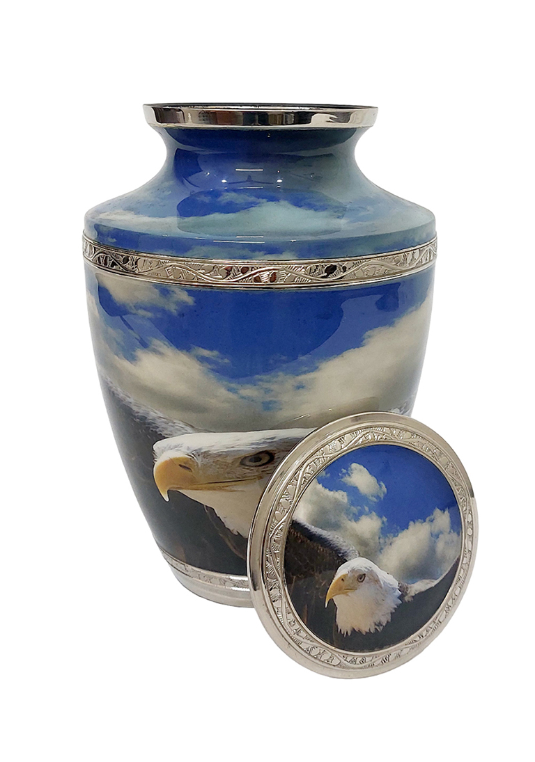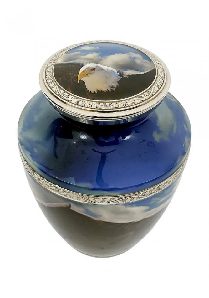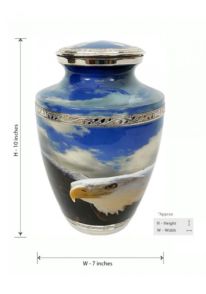 - White Eagle Designed Large Blue Cloudy Sky Adult Memorial Human Urn For Ashes