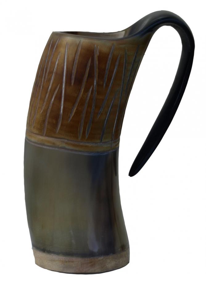 A Beautiful Hand-Carved Horn Tankard with Rustic Viking Flair